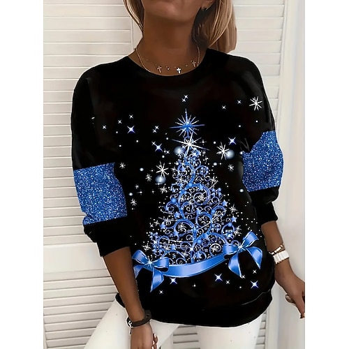 Felpa Pullover Donna Natale Magliette Grafica Albero Moda Casual Manica Lunga Collo Crew Regular Tops Street Quotidiana Stampa Rosa Blu Viola Oro Verde Primavera Autunno Inverno