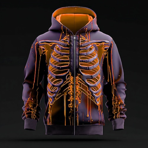 Per uomo 3D Scheletro Felpa con Cappuccio Felpa Punk Cool Gotico Manica Lunga Girocollo Feste Regalo Abbigliamento casual alla moda Rosso Blu Arancione Verde Coulisse Cerniera Autunno Inverno