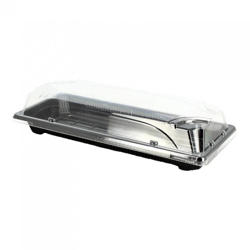 PuntoQPack 500 Stk. Recyclingfähige PS-Sushi-Schalen mit antifog-Deckel (22x9x4,5cm) Ref TPSUSHI1
