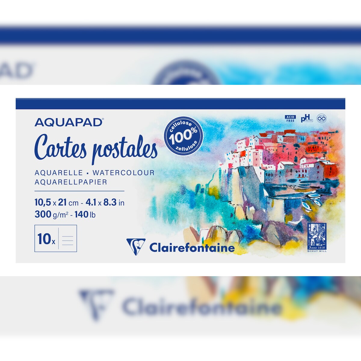 Clairefontaine 5x Aquapad Postkarten, geleimter Block 10,5x21 cm, 10 Blatt 300g - 975955C