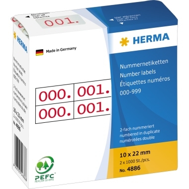 HERMA Etikett 4886 0-999 2-fach 10x22mm rot bedruckt 1.000 St/Pack
