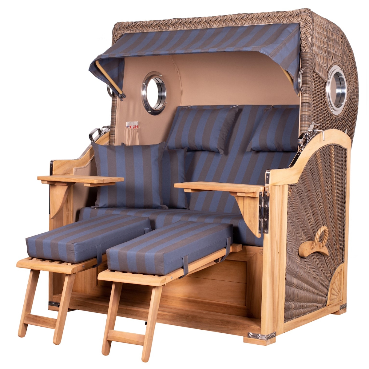Mr. Deko Strandkorb Komplettset - bene living - Königssee Teak Bullauge - PE grau - Modell 582 - inkl. Liftersystem