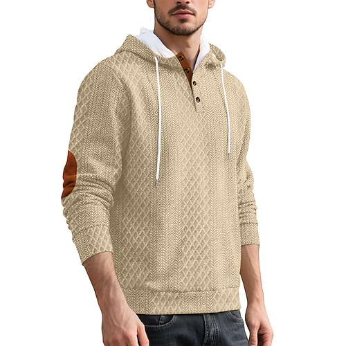 Per uomo Jacquard Felpa con cappuccio Maglione Felpa con cappuccio abbottonata Bianco Marrone Cachi Grigio chiaro Con Cappuccio Semplice Patchwork Blocco di colore Testurizzato Casuale Quotidiano