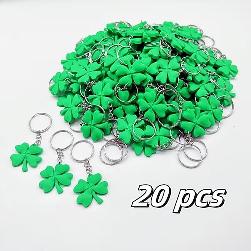 ciondolo portachiavi trifoglio di San Patrizio, ciondolo portafortuna in PVC con catena in lega di ferro moschettone