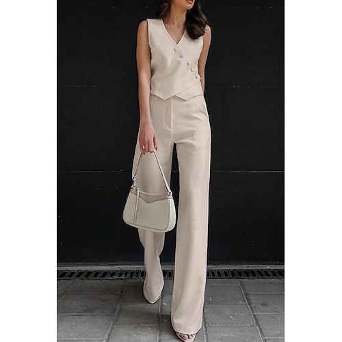 Per donna Attivo Essenziale Set di biancheria in cotone Set da due pezzi Misto lino Senza Maniche Girocollo Tinta unica Spacco sulla Coscia Casuale All'aperto Cachi Estate Vestibilità regolare
