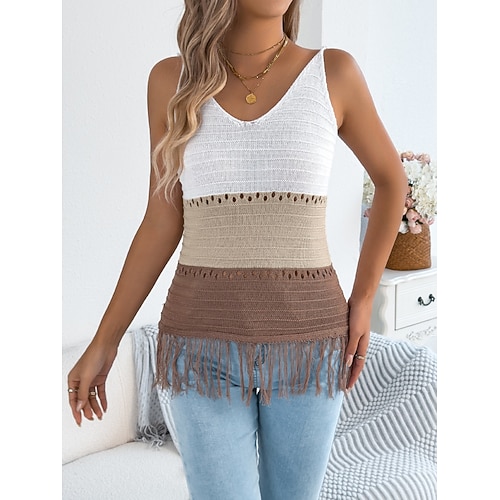 Per donna Top a maglia a coste Canotta Maglietta Blocco di colori Moda Elegante Classico Senza Maniche Scollo a V Top Regolari Quotidiano Uscire Weekend Nappa Blu Arancione Cachi Estate Primavera