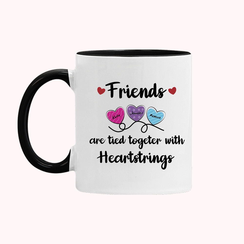 Taza de cerámica personalizada Friends Are Tied Together With Heartstrings con 2-6 nombres Mejor regalo de cumpleaños de Navidad de la amistad para la