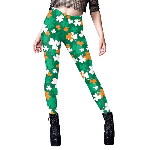San Patrizio 2026 Trifoglio Irlandese fortunato Carnevale Pantaloni Leggings Cosplay Adulti Per donna Giorno di San Patrizio Casuale Feste Costume di Carnevale facile Vestirsi