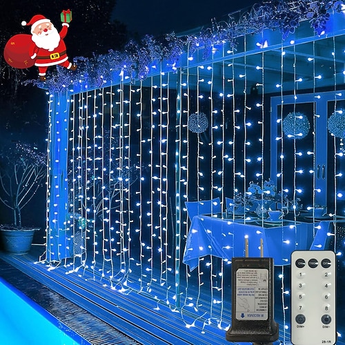 3m Luci a Stringa 300 LED Luce Calda Bianco Blu Luci per Finestra / Tenda / Ghiacciolo Interno Festa Vacanza 100-240 V