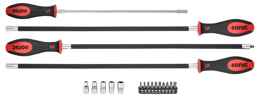 SONIC EQUIPMENT Flexibler Schraubendrehersatz mit Bits 19-tlg. 601906 Schraubwerkzeug-Set