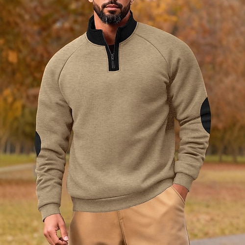 Per uomo Maglia Felpa in pile Maglione Felpa con zip corta Nero Blu marino Cachi Grigio chiaro Grigio scuro Colletto Mao Mezza zip Semplice Patchwork Blocco di colore Sport Outdoor Casuale