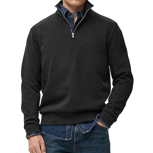 Per uomo Maglione Maglia Top Regolari Mezza cerniera Semplice Colletto Mao Cool Maglione Scuola Vacanza Abbigliamento Primavera Autunno Nero Blu marino scuro S M L