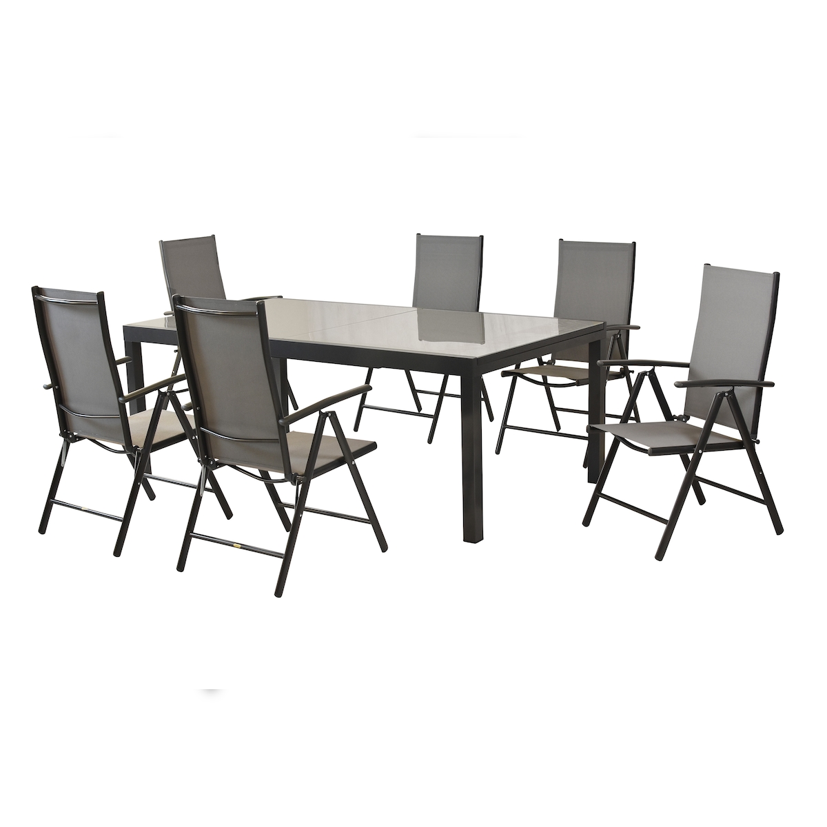 Merxx Amalfi Set 7tlg., 6 Klappsessel, Semi-Ausziehtisch 200 (300) x 110 cm, graphit/grau, Aluminium/Textil