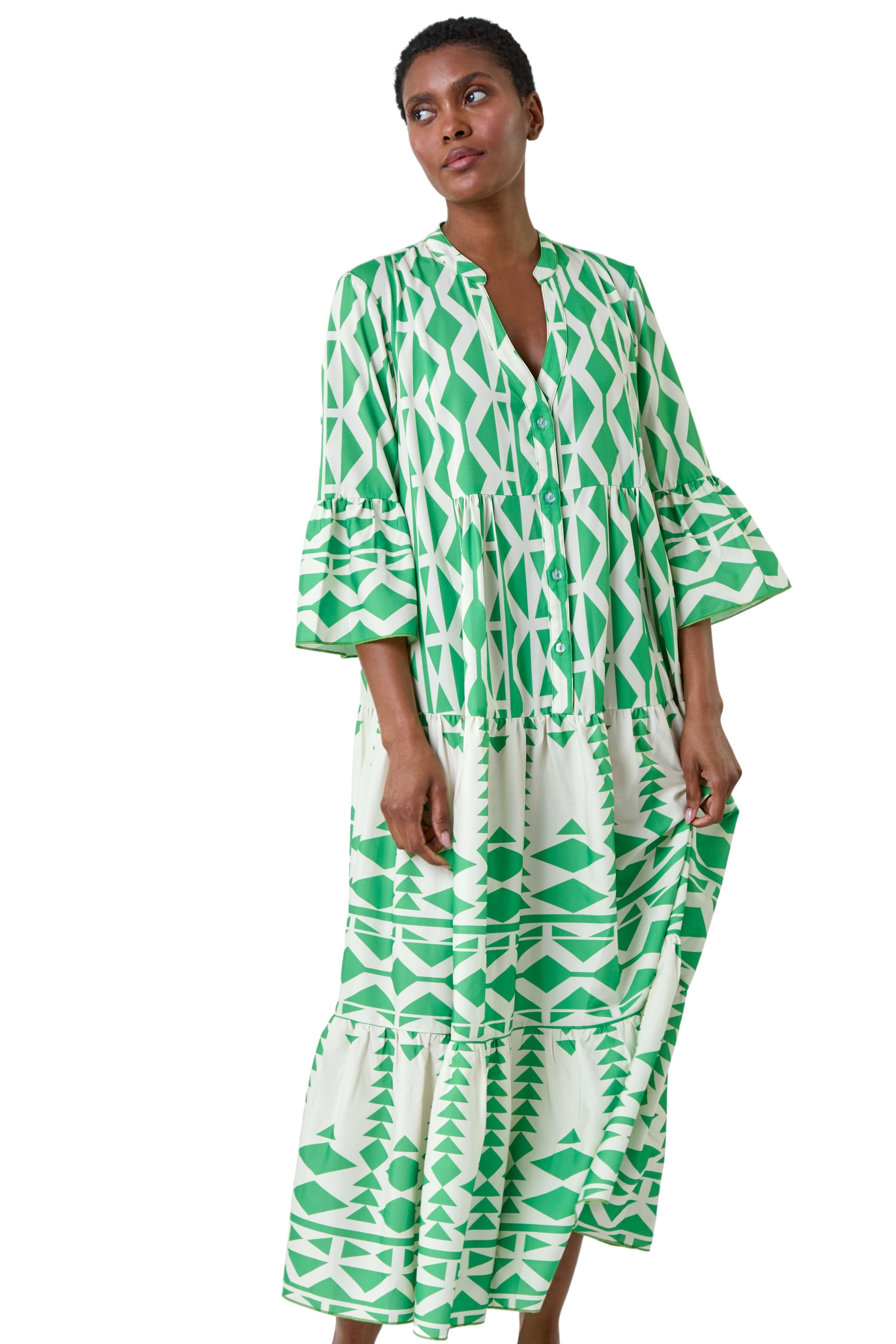 Roman Womens Border Print Shirred Maxi Dress - Black - Size 16 UK | Roman Sale | Discount Designer Brands