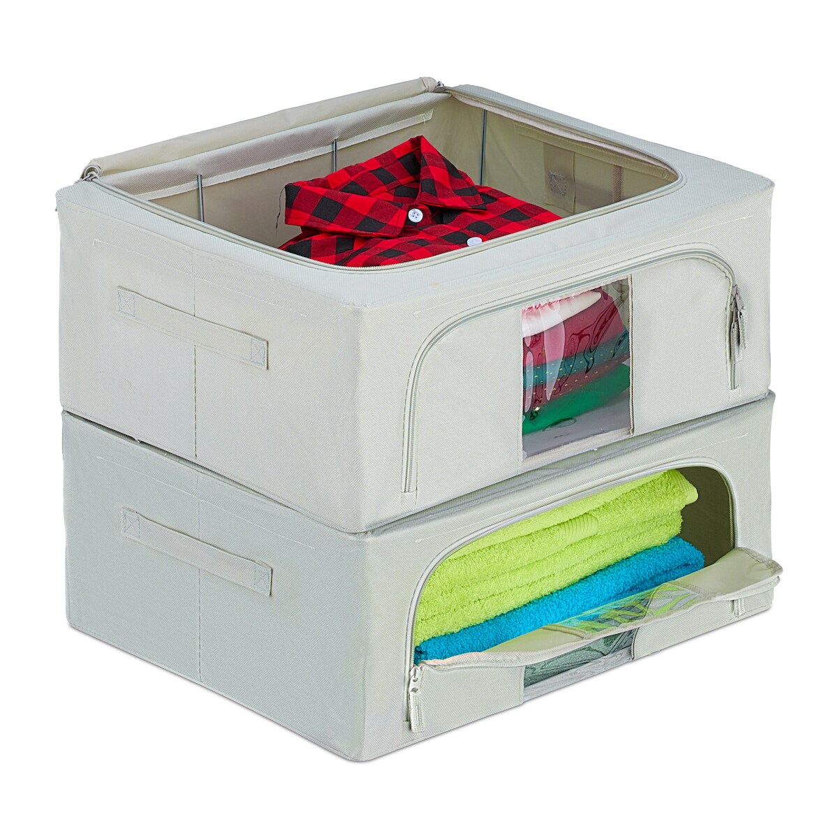 Relaxdays Aufbewahrungstasche im 2er Set, je 40 l Volumen, Reißverschluss, Bettzeug, Kleidung, Wäscheaufbewahrung, grau