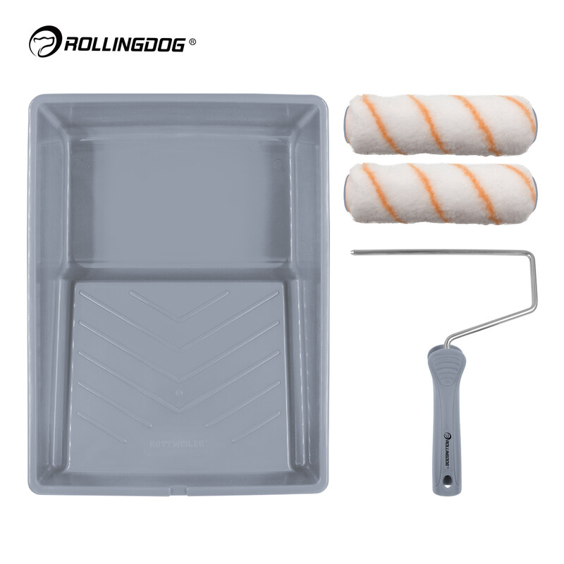 ROLLINGDOG Doberman Pinscher 5-teiliges Farbroller-Set, professionelles Set aus Polyester-Filament-Pinseln, für Innen- und Außenbereich, Wand & Decke, DIY, Heimwerken, Renovierung, Bau, hohe Saugfähigkeit, haarsparend, langlebig, ergonomischer Griff, für Profi-Maler und Heimwerker
