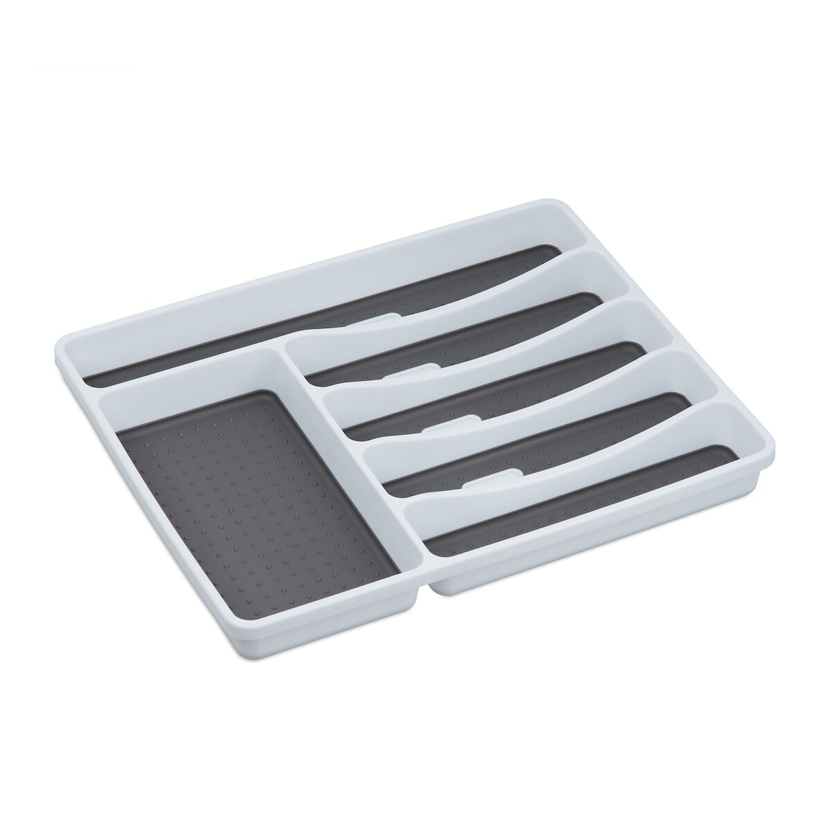 Relaxdays Besteckkasten für Schubladen, Besteckeinsatz für Kochbesteck, Schubladeneinsatz, HBT 4,5x33x40 cm, weiß/grau