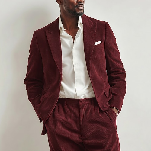 Uomo Affari Casuale Abito in velluto a coste Bavero classico Nero Rosso Quotidiano Affari Tinta unita Vestibilità su misura 2 pezzi Monopetto Due Bottoni