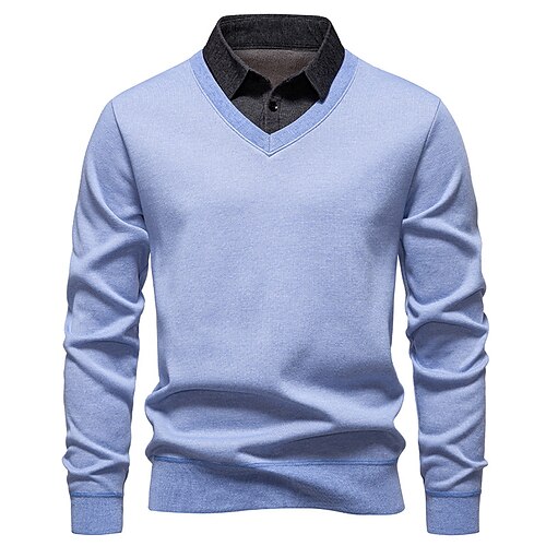 Per uomo Felpa Maglione A Coste Maglia Top Regolari 2 in 1 Lavorato a maglia Semplice Collo ripiegato Maglieria Contemporaneo Casuale Abbigliamento quotidiano Abbigliamento Primavera Autunno Nero Blu