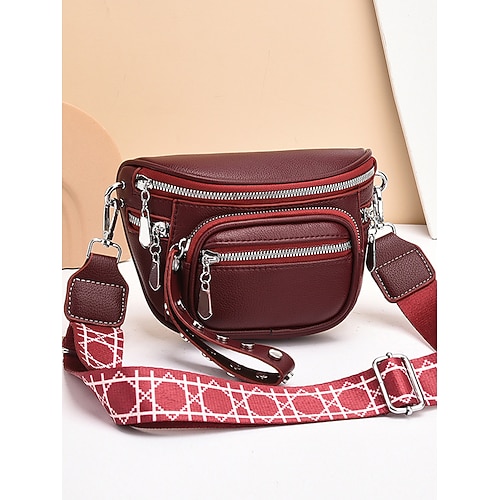 Borsa a tracolla da donna in similpelle bordeaux con tasche multiple con cerniera, tracolla larga e finiture argentate, elegante borsa da viaggio a mani libere per l'uso quotidiano e per gli outfit delle vacanze natalizie