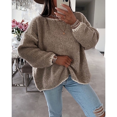 Per donna Maglietta Blocco di colori Moda Elegante Classico Manica Lunga Girocollo Top Regolari Quotidiano Weekend Rosa Azzurro cielo Cachi Grigio Primavera Autunno Inverno