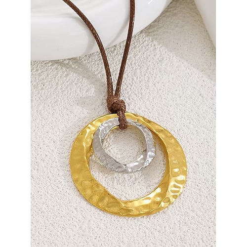 Collana con ciondolo in acciaio inossidabile da uomo con design a doppio cerchio, disponibile in più colori, perfetta per occasioni casual, vacanze e alla moda