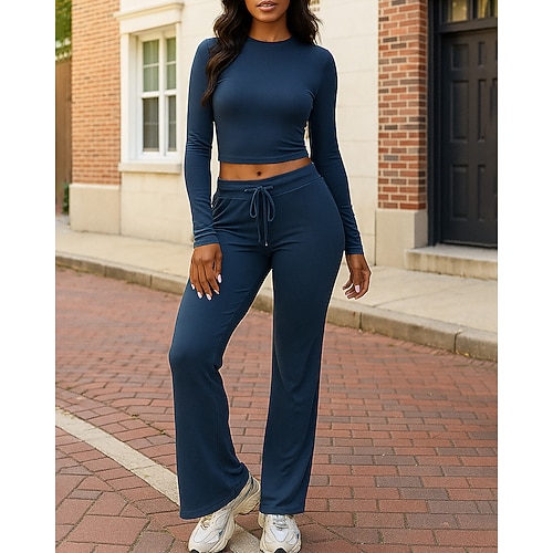 Per donna Set di tute e pullover Tuta da 2 pezzi Abiti da salotto Coulisse Tinta unita Completo Abbigliamento Autunno Rosa Chiaro Rosa Escursionismo Lavoro All'aperto Leggero Manica Lunga Sport