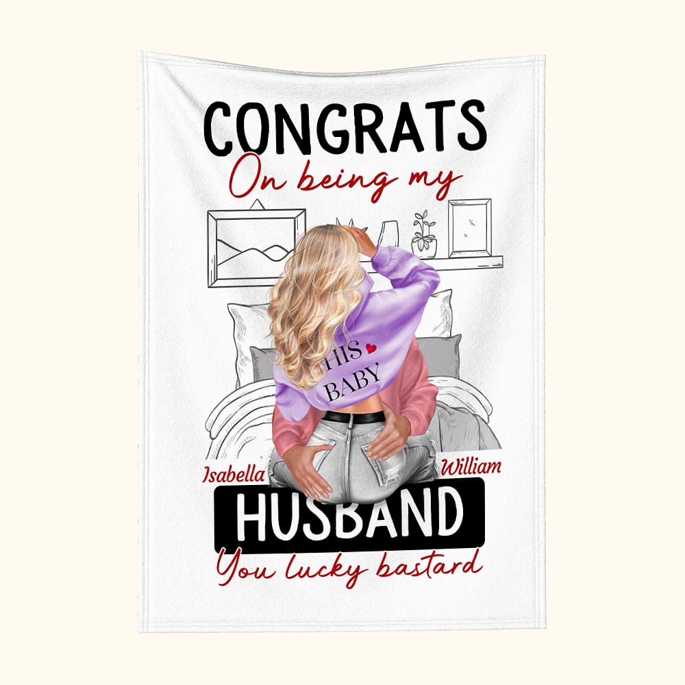 Couverture de lit personnalisée Congrats On Being My Husband Fleece Sherpa Soft Blanket Cadeau pour Couple