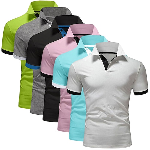 Polo da golf da uomo, 6 pezzi, casual, sportiva, classica, a maniche corte, tinta unita, tinta unita, confezione multipla da 6 pezzi, estiva, primaverile, per tutte le stagioni, vestibilità regolare.
