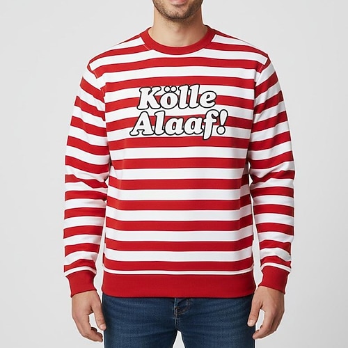 Costume di Carnevale 2026 Carnevale Felpa Maglione Bianco e Rosso A strisce Kölle Alaaf! Adulti Per uomo Unisex Carnevale Feste Performance Costume di Carnevale facile Vestirsi