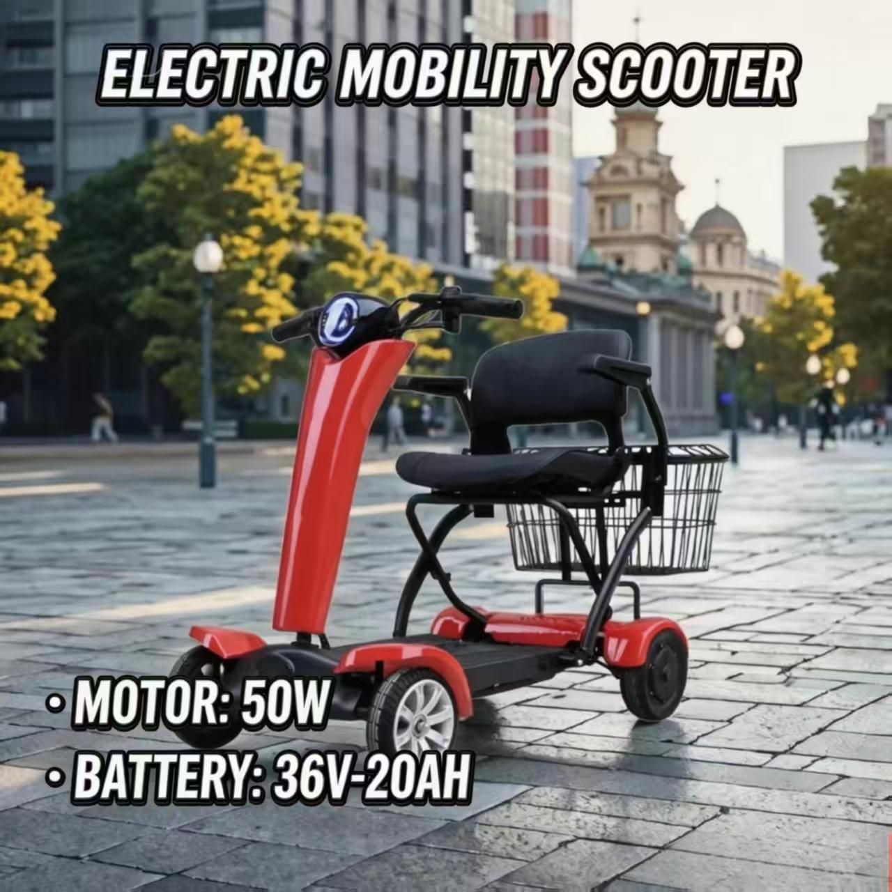 Vuxen mini liten fyrhjulig automatisk hopfällbar elektrisk scooter för funktionshindrade för äldre med dubbla motorer mobilitetsscooter för äldre röd