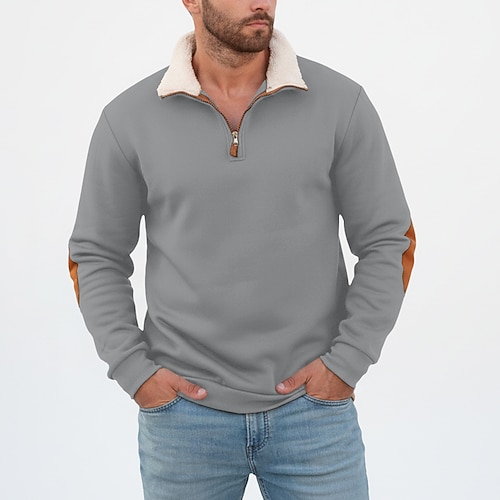 Per uomo Maglia Felpa in pile Maglione Felpa con zip corta Nero Blu marino Cachi Grigio chiaro Grigio scuro Colletto Mao Mezza zip Blocco di colori Patchwork Sport Outdoor Casuale Quotidiano