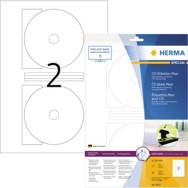 HERMA Etikett SuperPrint 8624 116mm CD Maxi ws 20 St./Pack.