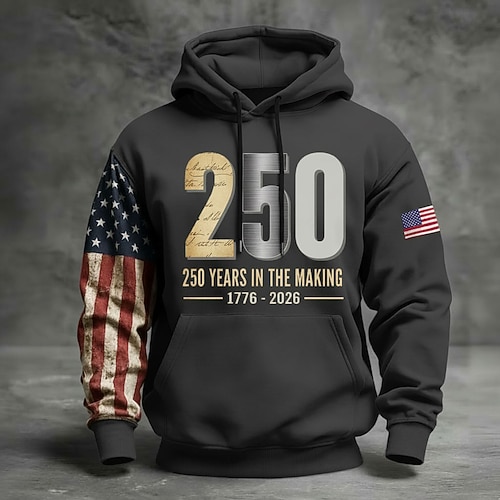 250° anniversario dell'America Per uomo Felpa con Cappuccio Felpa con cappuccio Festival Nero Blu marino Verde militare Grigio Stampa 3D Inverno Primavera Autunno progettista S M L XL 2XL 3XL