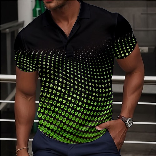 Per uomo Geometrico Polo Maglia da golf Manica Corta Magliette polo Camicie con Colletto Business Casual Abbigliamento da vacanza Abbigliamento Formale Abbigliamento da festa Bottoni Stampa 3D Nero