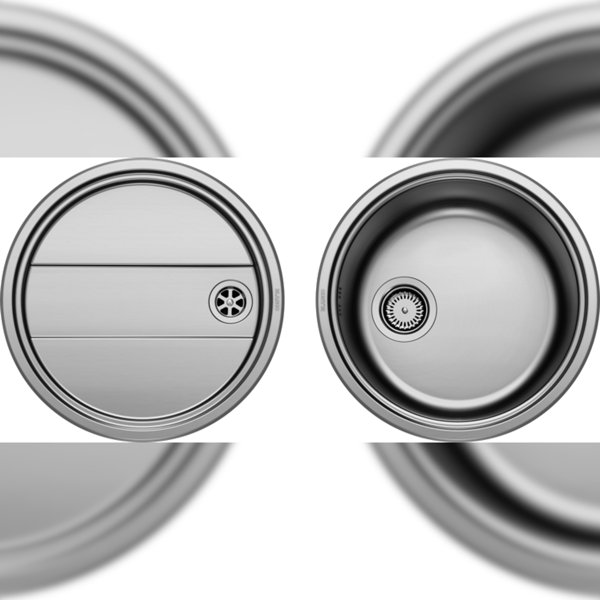 Blanco Rundes Spülbecken, Blancorondoset 46 x 39 cm, mit Abtropffläche, Edelstahl mit Bürstenfinish