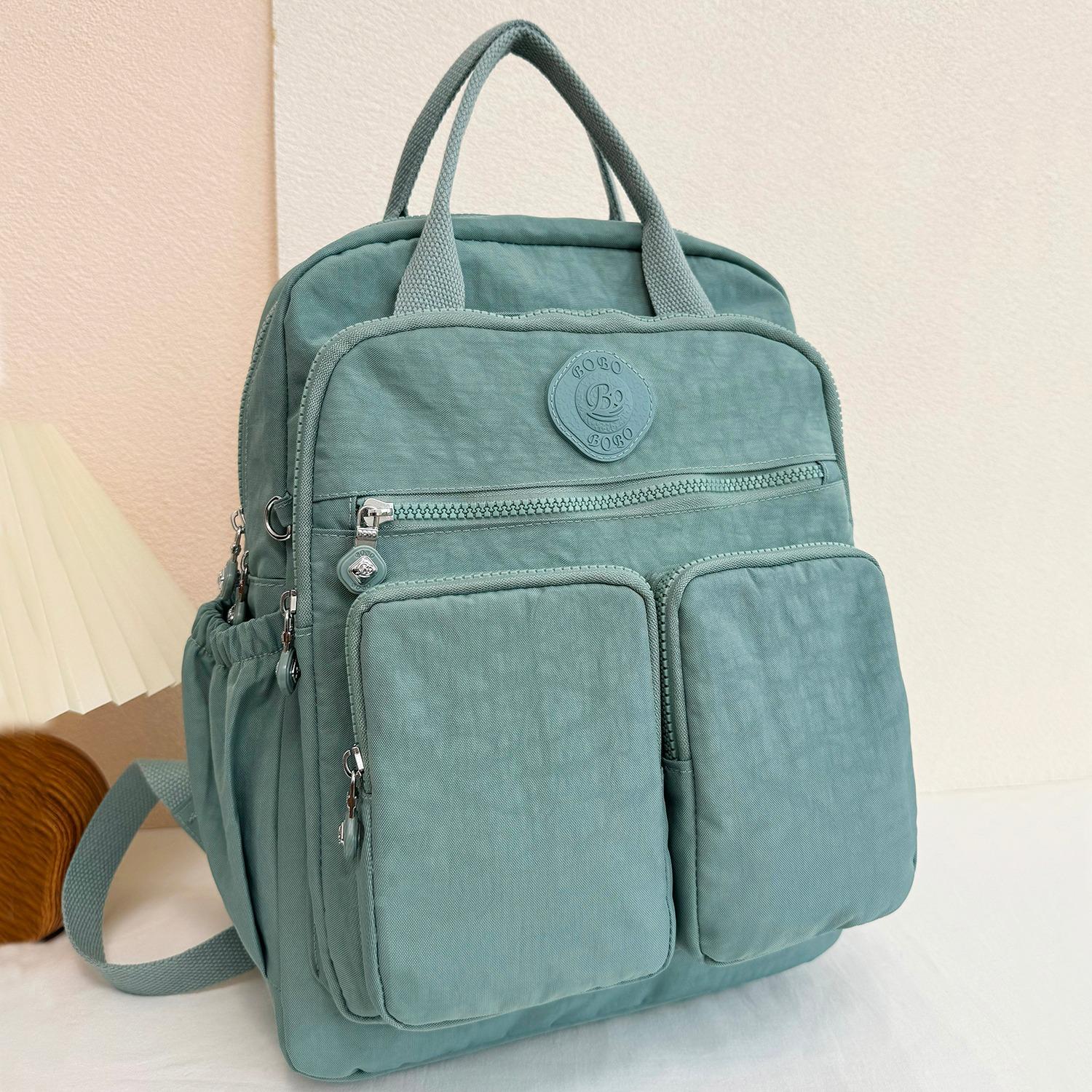 Sac à dos femme mode multi-poches poignée souple couleur unie nylon sac à dos de voyage léger décontracté sacs à dos scolaires
