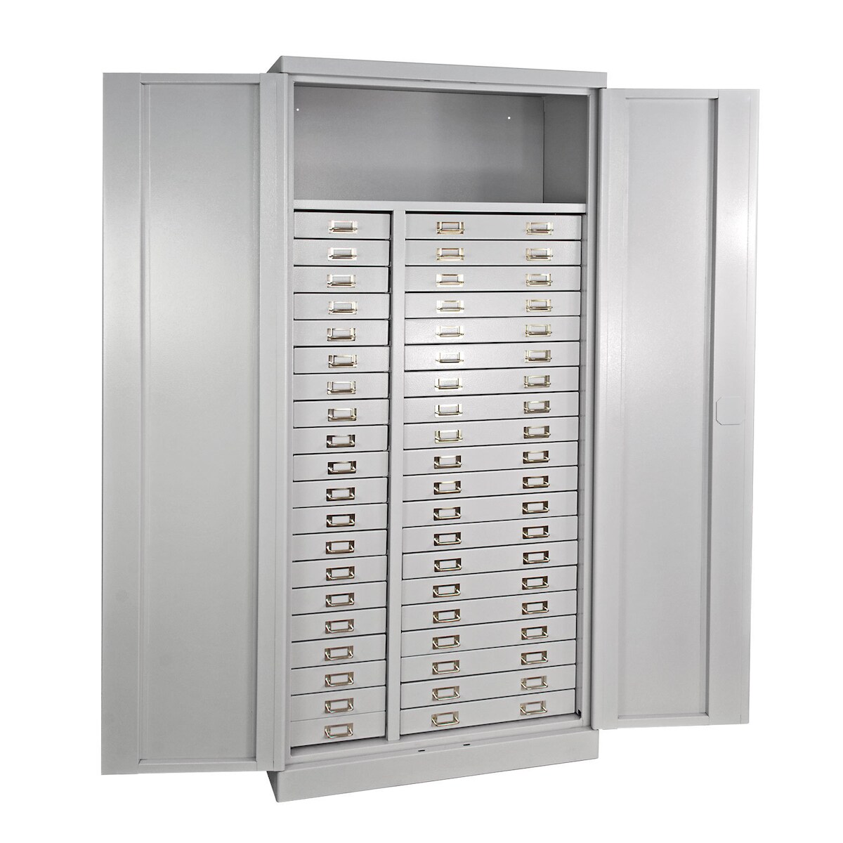PROREGAL Schubladenschrank Chinchilla mit 40 Schubladen + 1 Ablageboden | HxBxT 179x80x41cm | Lichtgrau