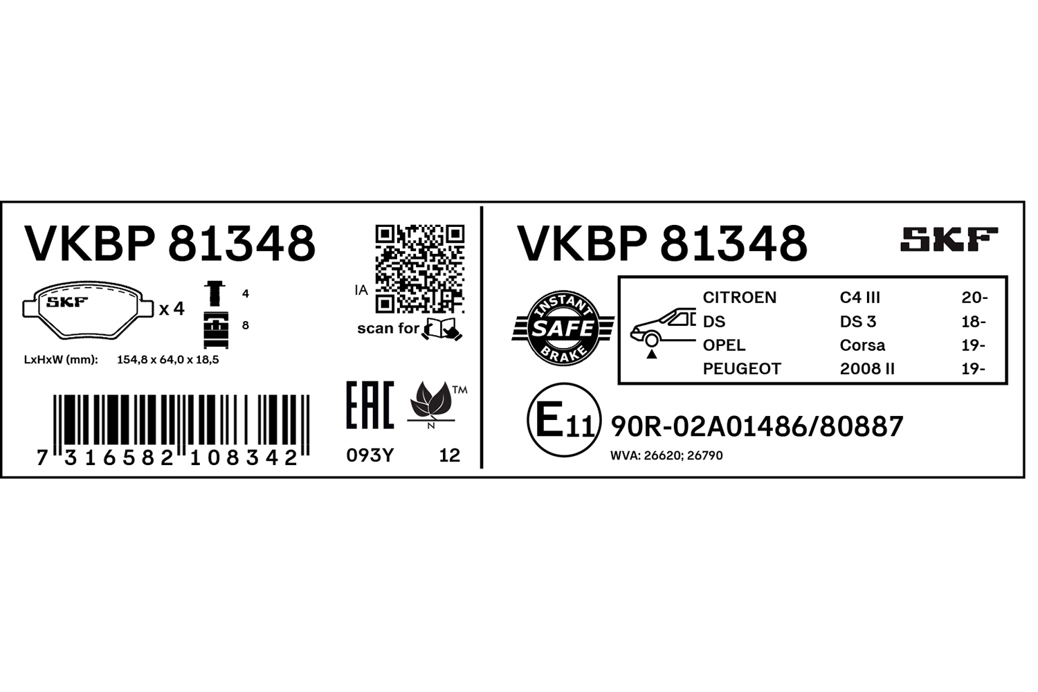 SKF Bremsbelagsatz, Scheibenbremse VKBP 81348 vorne rechts links für PEUGEOT CITROËN 1681371180