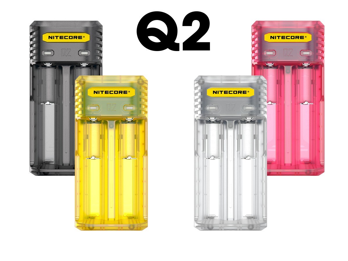 Nitecore Q2 - Schnelladegerät für Li-Ion Akkus, 2 Schachtlader - 4 Farben zur Auswahl Trans