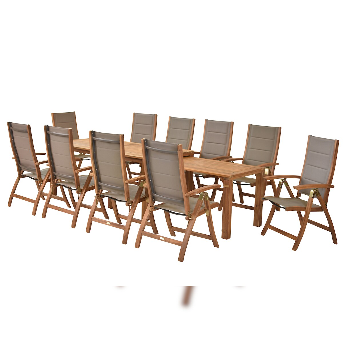 Merxx Acapulco Set 11tlg., 10 Klappsessel, 1 Flex Ausziehtisch 185/360 x 90/74 x 76/70 cm, Akazie