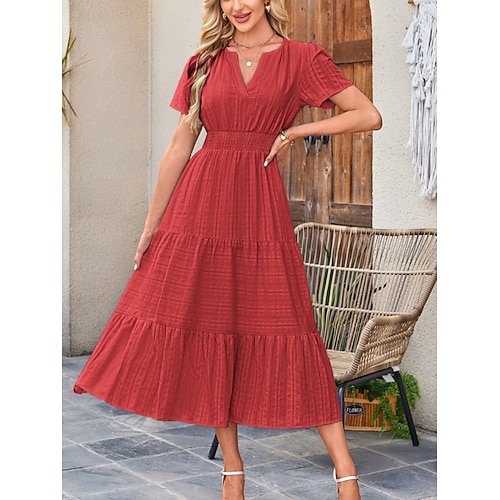 Per donna Abito maxi Abito a trapezio Casual Quotidiano Vestibilità regolare Semplice Manica Corta Scollo a V Blu Bianco Giallo Rosso Estate Primavera
