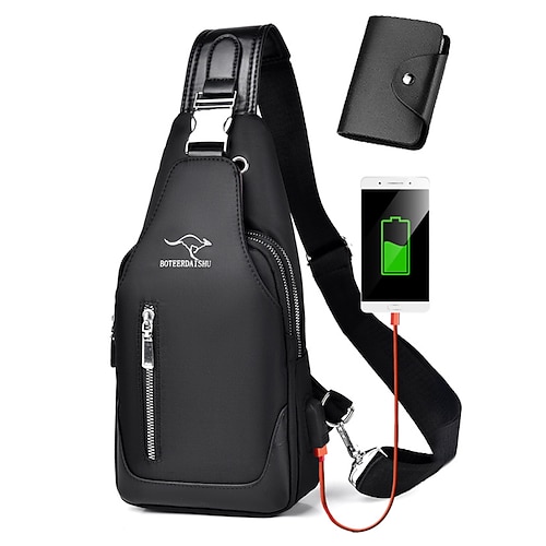 Borsa a tracolla impermeabile da uomo in tessuto Oxford con porta di ricarica USB, multiuso, disponibile in più colori, perfetta per l'uso casual e all'aperto