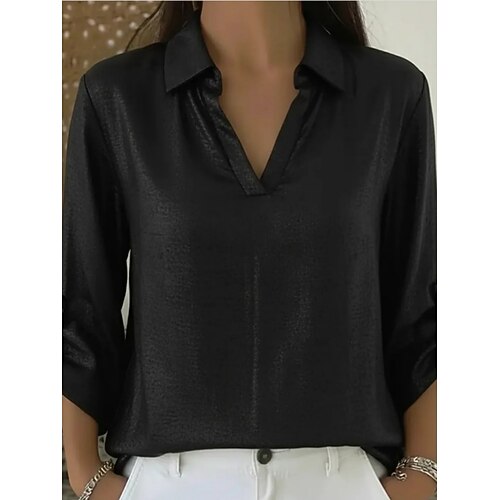 Per donna Camicia in raso Camicia elegante Blusa Tinta unica Elegante Essenziale Manica Lunga Collo ripiegato Top Regolari Quotidiano All'aperto Feste Nero Bianco Rosso Oro Primavera Autunno