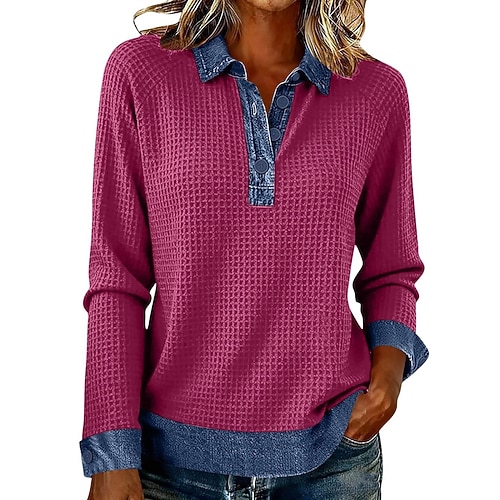 Per donna Camicia casual Camicia con Bottoni Blusa Patchwork Bottoni Tinta unica Semplice Quotidiano Elegante Classico Manica Lunga Collo ripiegato Top Regolari Ferie Abbigliamento mare Abbigliamento