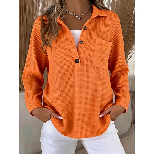 Per donna Blusa Bottoni Tinta unica Elegante Casual Manica Lunga Colletto a Camicia Top Regolari Quotidiano Blu Rosa Viola Verde Primavera Autunno