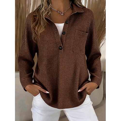 Per donna Camicia Blusa Patchwork Bottoni Stampato Grafico Geometrico Plaid Vintage Quotidiano Elegante Manica Lunga Colletto a Camicia Top Regolari Quotidiano Blu Giallo Rosa Vino Rosso Primavera