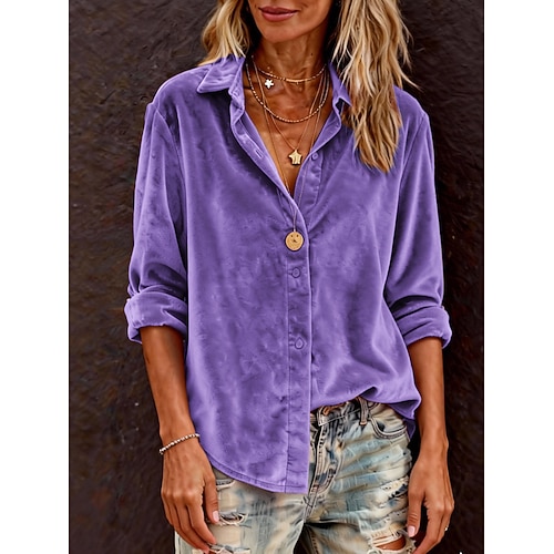 Per donna Camicia Velluto Elegant Elegante Tasca Bottoni Semplice Vintage Casual Manica Lunga Colletto a Camicia Top Regolari Ferie Uscire Blu Viola Arancione Rosa Autunno Inverno