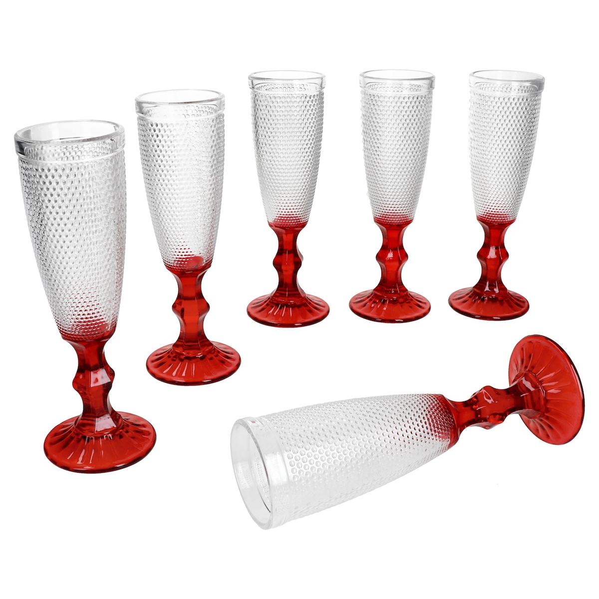 6x Rubin Sektgläser 150ml rot Glas gepunktet Sekt-Flöte Prosecco Champagner