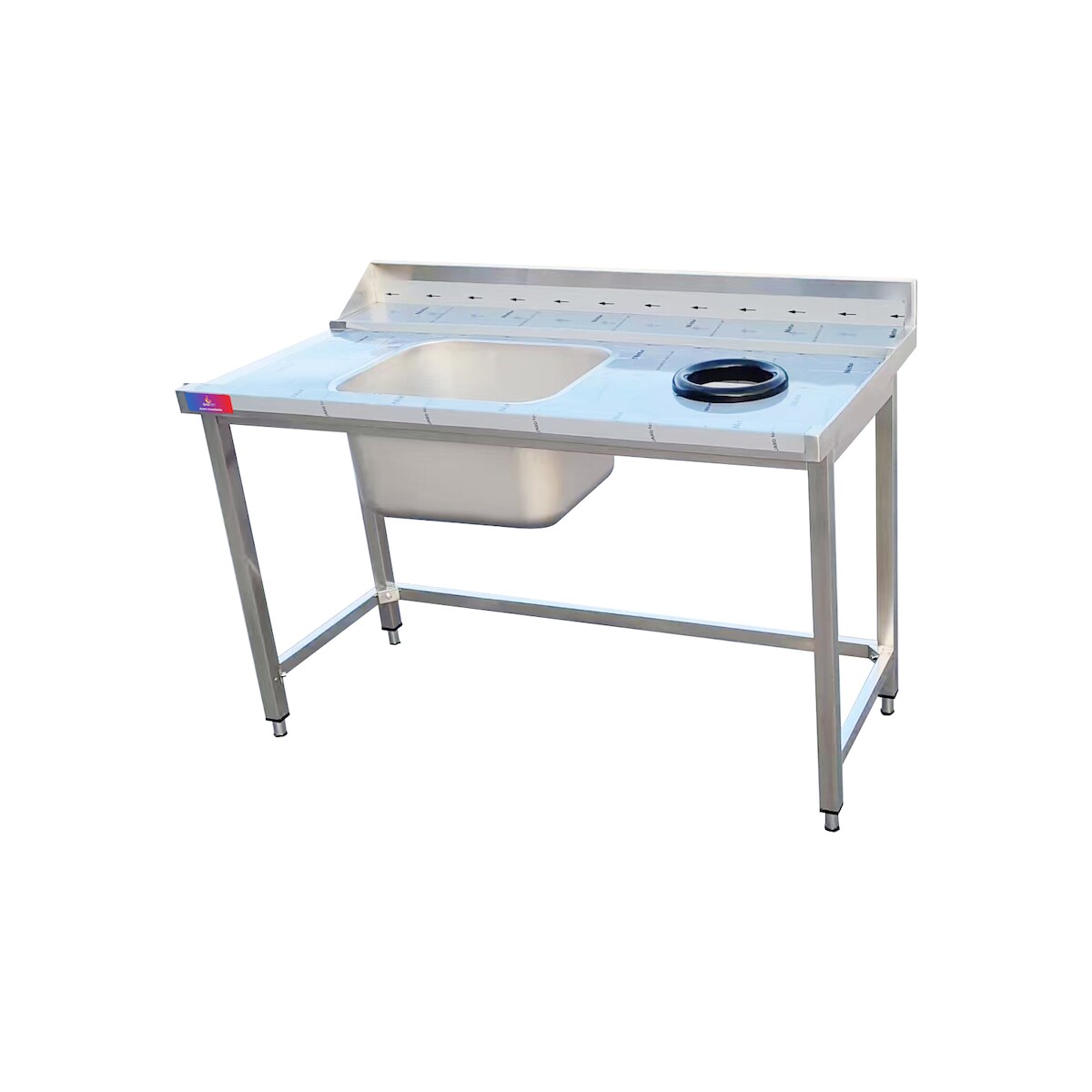 Gasfrit - Linker Eingangstisch für Edelstahl-Kuppelgeschirrspüler mit 1 Becken und Abfallbehälter 1800x750x850+100 mm